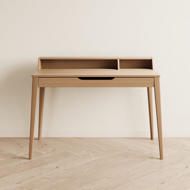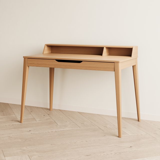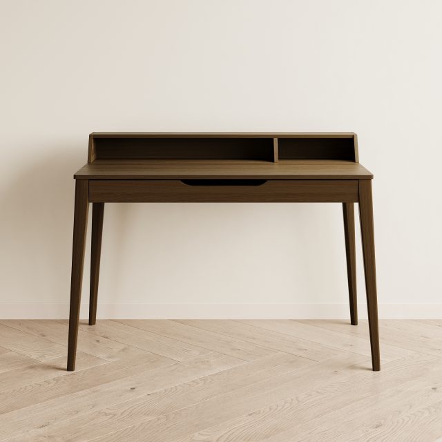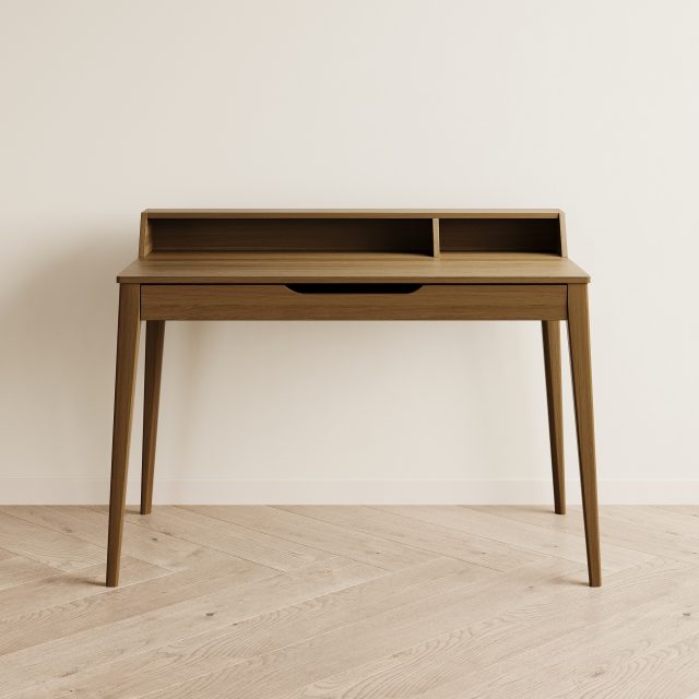 Письменный стол Buro — бестселлер в коллекции lulu’space. Дизайнер бренда Илья Евтюшенков хотел создать элегантное и удобное рабочее место. Так появился стол Buro с оригинальным дизайном. У модели есть функциональная письменная поверхность и выкатной ящик с доводчиком, который подходит для хранения канцелярских принадлежностей и освобождает пространство на столешнице. Функцию ручек в нем выполняет фигурный вырез на фасаде.Декоративная надстройка на столешнице расширяет функционал этой модели: в два дополнительных отделения помещаются небольшие предметы и полезные мелочи. Еще на ней можно расположить монитор для компьютера, чтобы он находился на уровне глаз. Благодаря деликатной эстетике стол выглядит самодостаточно и гармонично вписывается в обстановку.