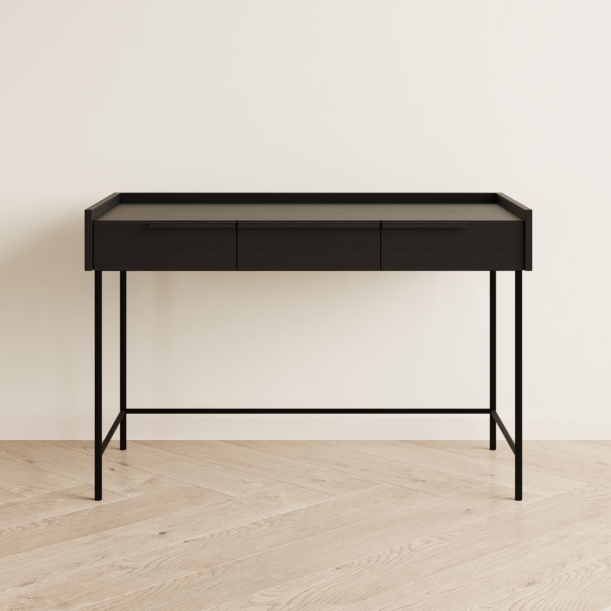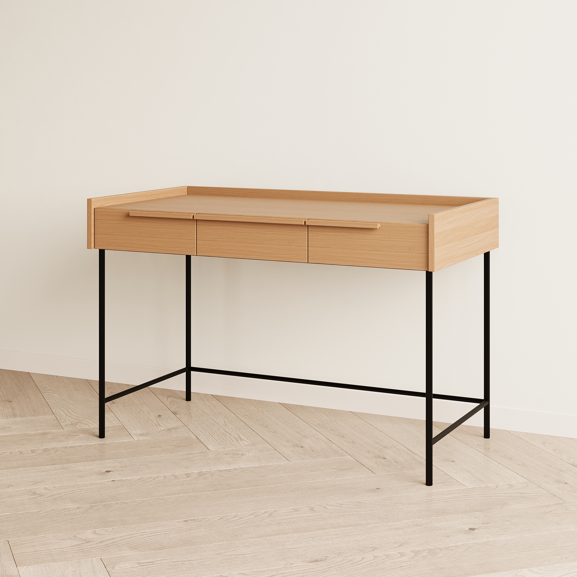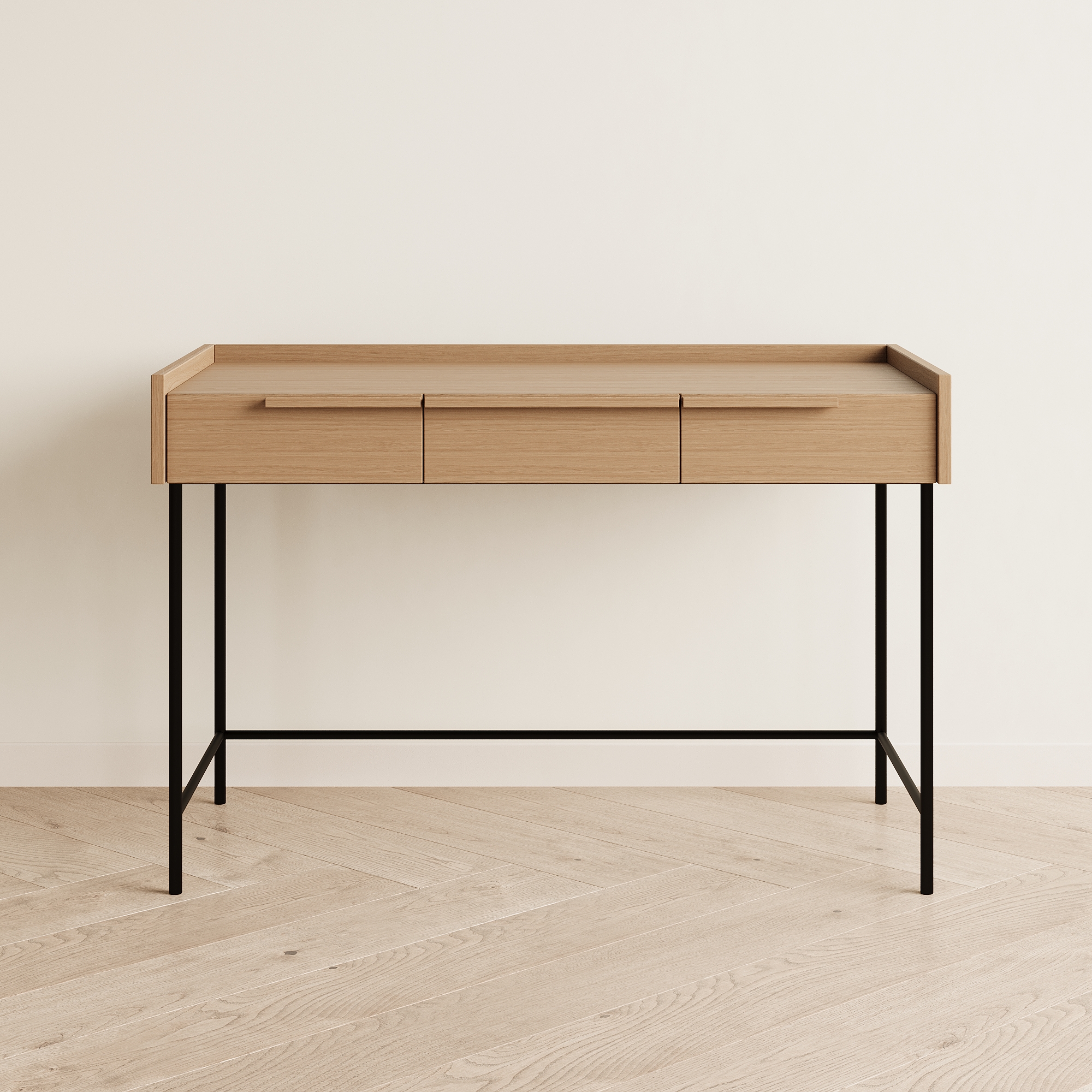 Особенности конструкции: 3 выкатных ящика (шариковые направляющие с доводчиками). Ручки изготовлены из массива.Варианты отделок: при выборе натуральных оттенков дерева (дуб/светлый орех и т.д.), поверхности будут со структурой дерева. При покрытии эмалями в однотонный цвет (белый/чёрный/RAL/NCS), можно выбрать поверхности: гладкие или со структурой дерева. Вариант отделки и выбор оттенка эмали указываются в комментариях при оформлении заказа на сайте.
