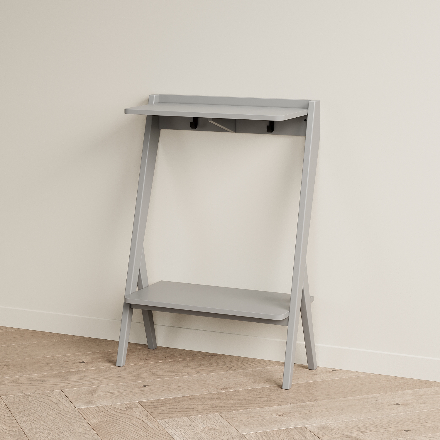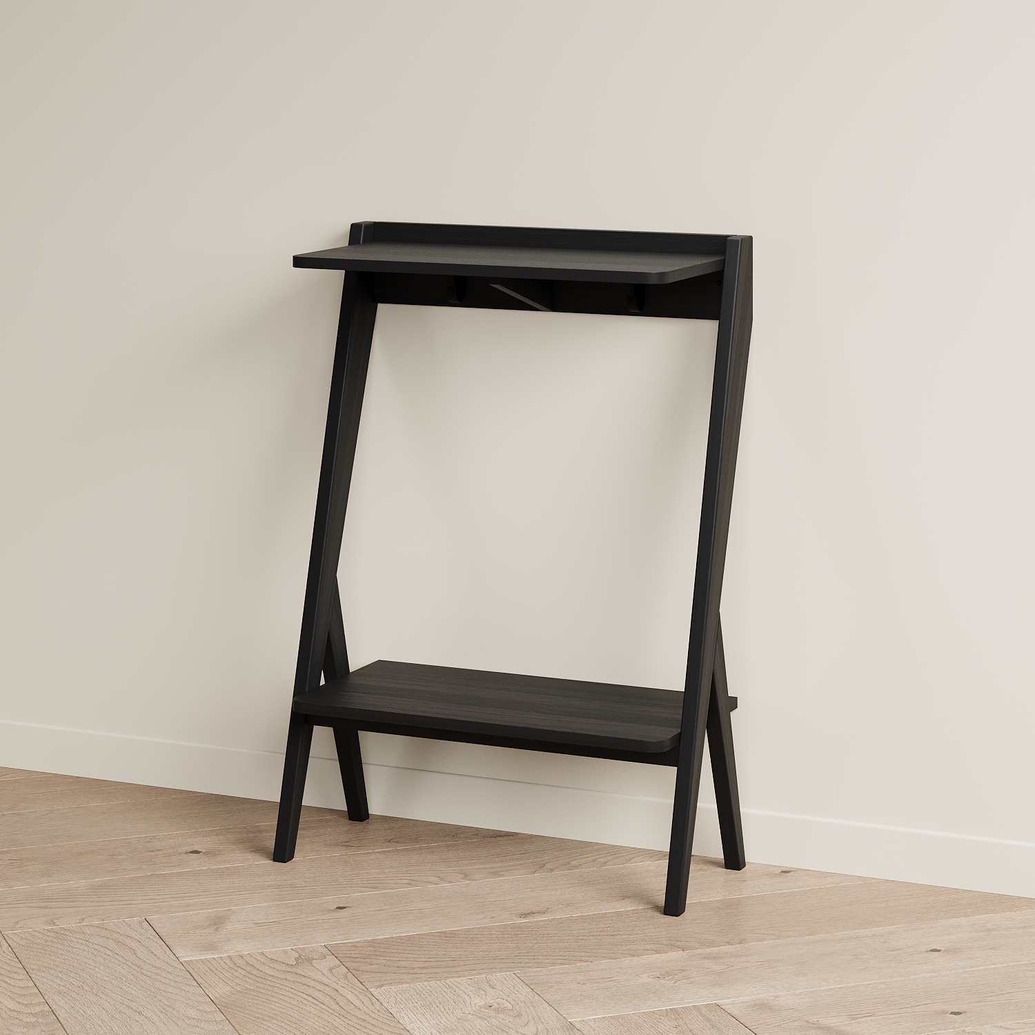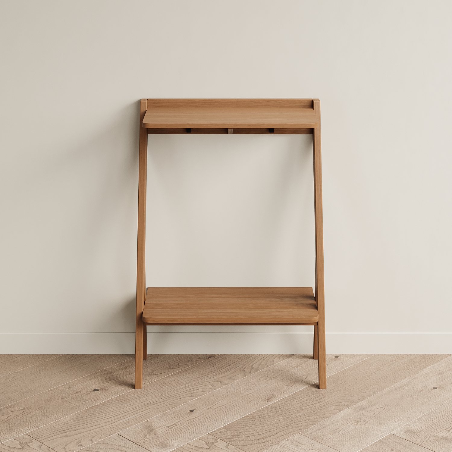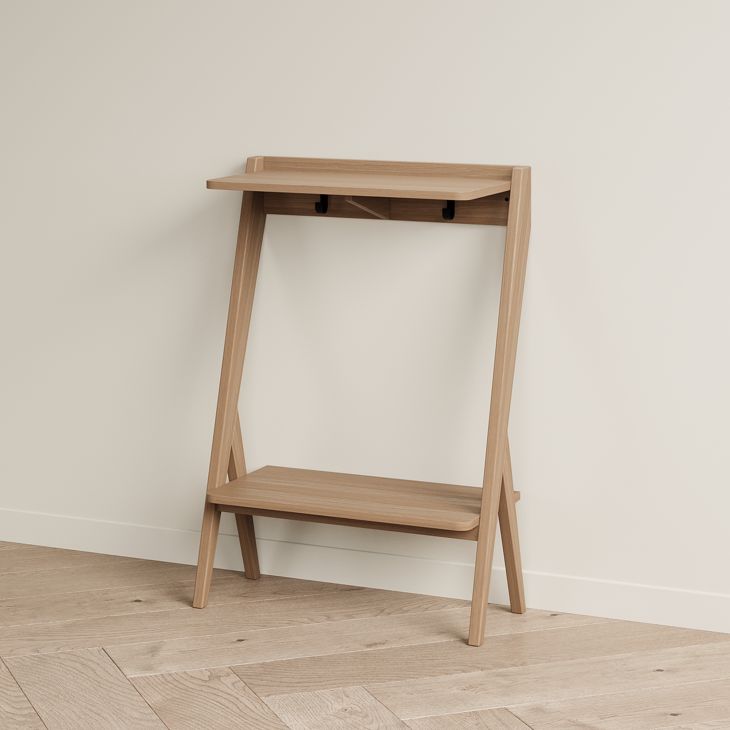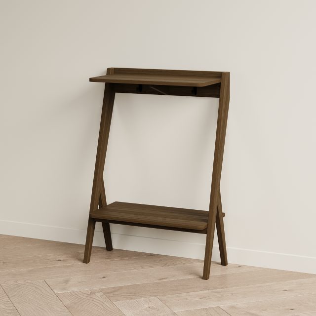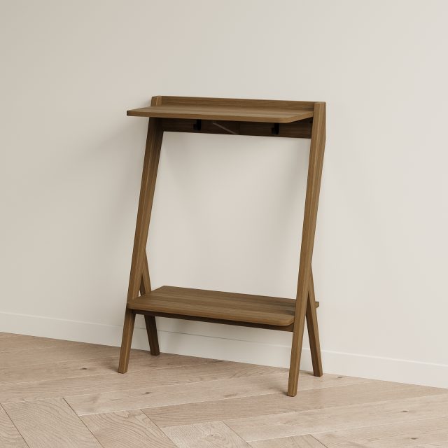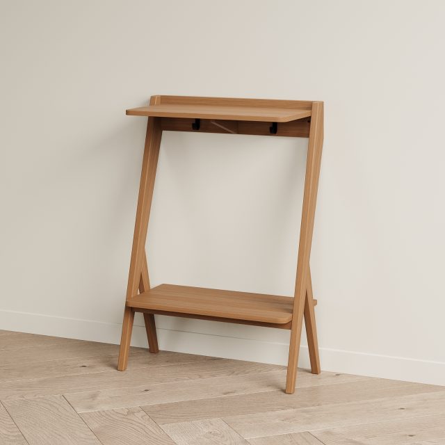 Мы разработали узкую и компактную консоль для прихожей PTICA. Она подойдет для интерьеров в стилях midcentury, скандинавском, джапанди. Эта модель решает сразу несколько задач по хранению: на столешницу можно положить ключи и сумку, под столешницей на крючки можно подвесить поводки для собак, зонт, рюкзак. Нижнюю полку использовать для хранения шарфов, обуви, боксов. Место под нижней полкой можно использовать для хранения обуви. Глубина консоли PTICA 300 мм, благодаря этому она не займет много места. Над ней можно повесить зеркало или крючки для одежды, рядом поставить банкетку. Консоль необходимо крепить к стене. В консоли под столешницей в углах имеются два отверстия для крепления к стене. Крепеж необходимо приобрести отдельно - дюбели и саморез корректной длины и вида для материала ваших стен (рекомендуем проконсультироваться со строителями).