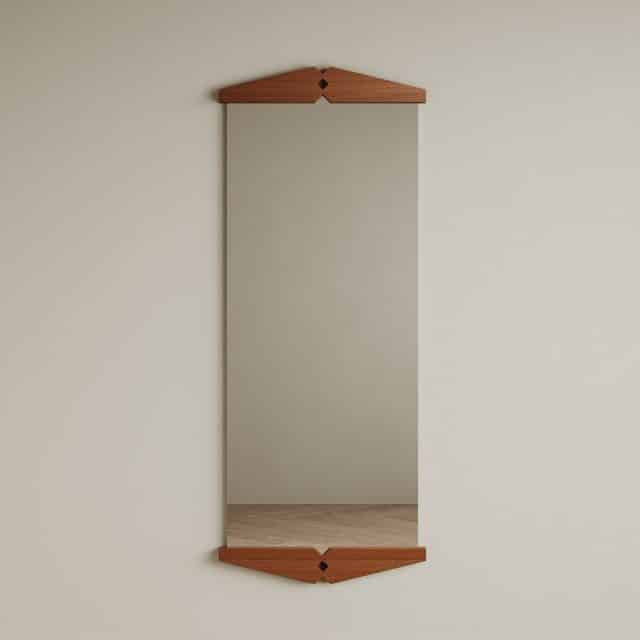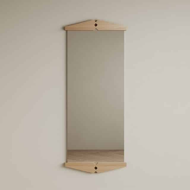 Зеркало из новой серии УЗОРЫ было разработано дизайнером и сооснователем бренда Марией Евтюшенковой во время участия в исследовательской лаборатории Артель для выставки во Всероссийском музее декоративного искусства. В рамках лаборатории дизайнер изучала архивные материалы и книги о русских народных предметах быта и декоративных приёмах работы с деревом, посетила Музей-заповедник «Кижи» в Карелии. Эта поездка вдохновила ее на использование деликатных отсылок к русскому деревянному зодчеству при разработке предметов для этой серии.Видимые части рамы зеркала УЗОРЫ выполнены из дубовых досок, сочетая классические и современные приемы деревообработки и элементы сквозной резьбы. Дизайн вызывает ассоциации с формами и деталями, характерными для внешних декоративных архитектурных элементов русской избы (причелины, огниво, элементы на окнах), но при этом вписывается в лаконичную эстетику коллекции бренда. Отсутствие видимых элементов по длинным сторонам зеркального элемента, делают этот объект лёгким, создавая необычный визуальный эффект в интерьере. Зеркало УЗОРЫ гармонично дополнит современный интерьер, сохраняя тонкую связь с народными промыслами.