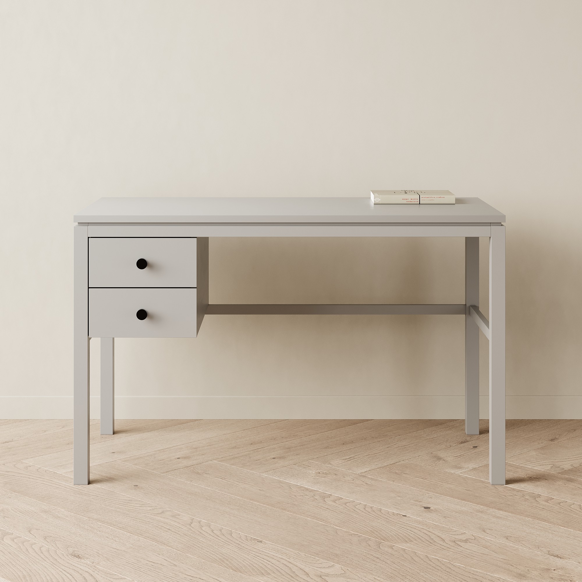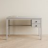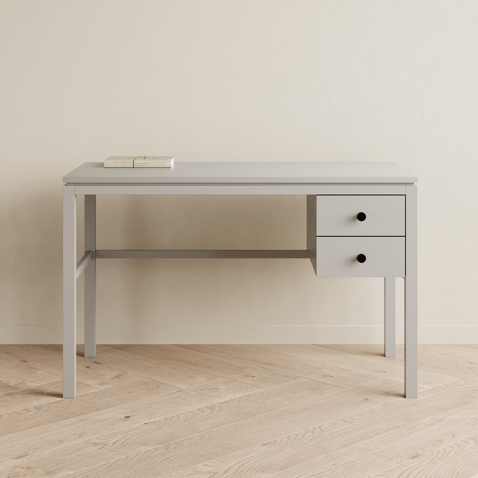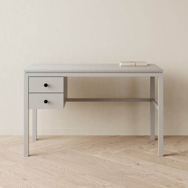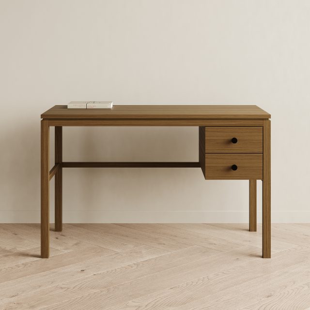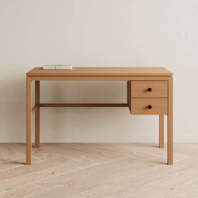 | Столешница, каркас, фасады ящиков, задняя стенка - плита МДФ, покрытая шпоном дуба или эмалью (в зависимости от расцветки); ножки, царги - массив дуба; внутренние ящики - плита МДФ, покрытая белой матовой эмалью. |