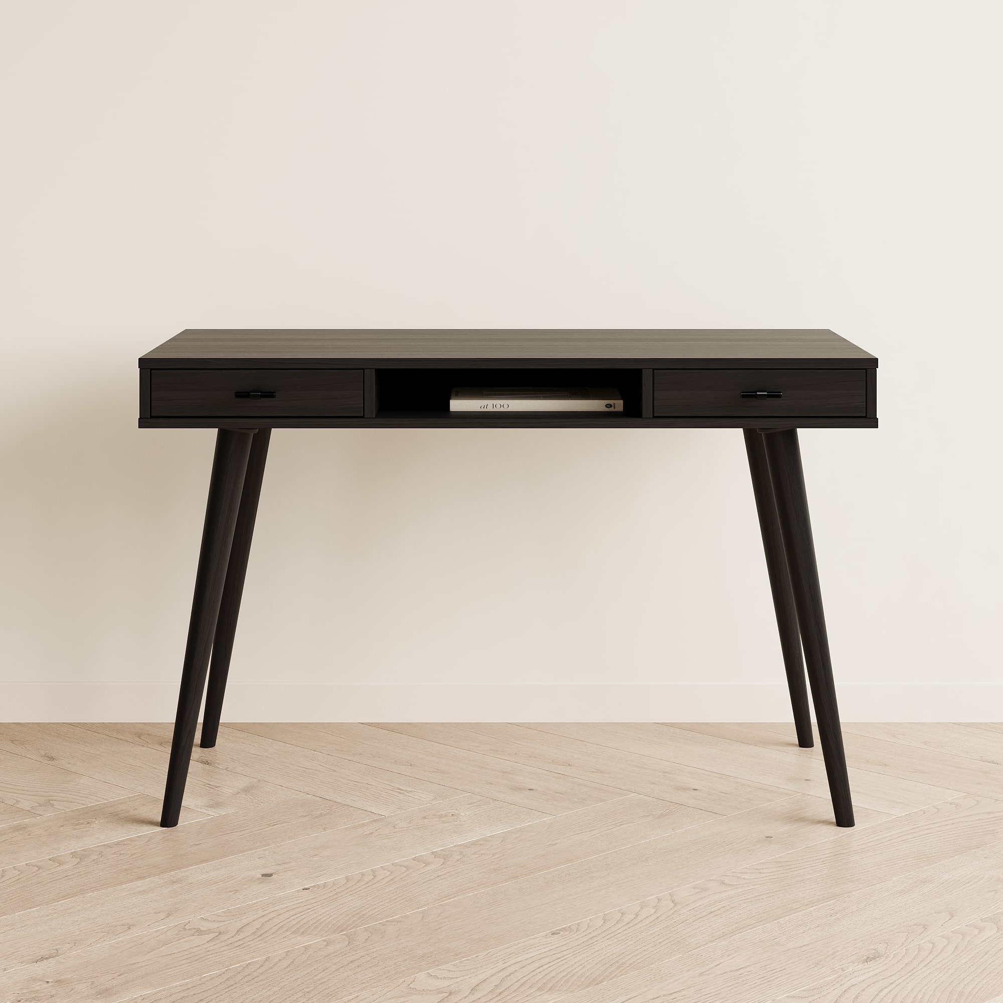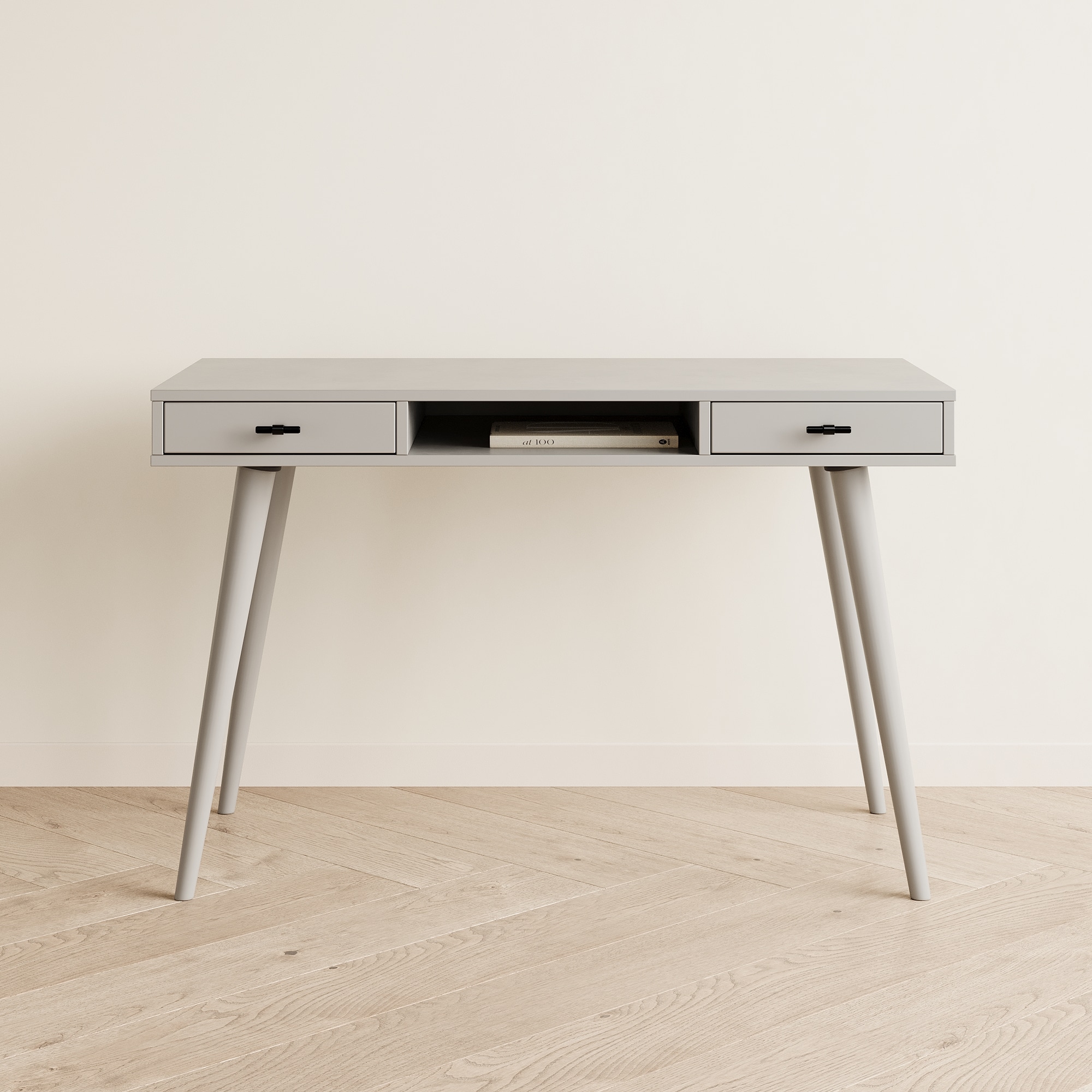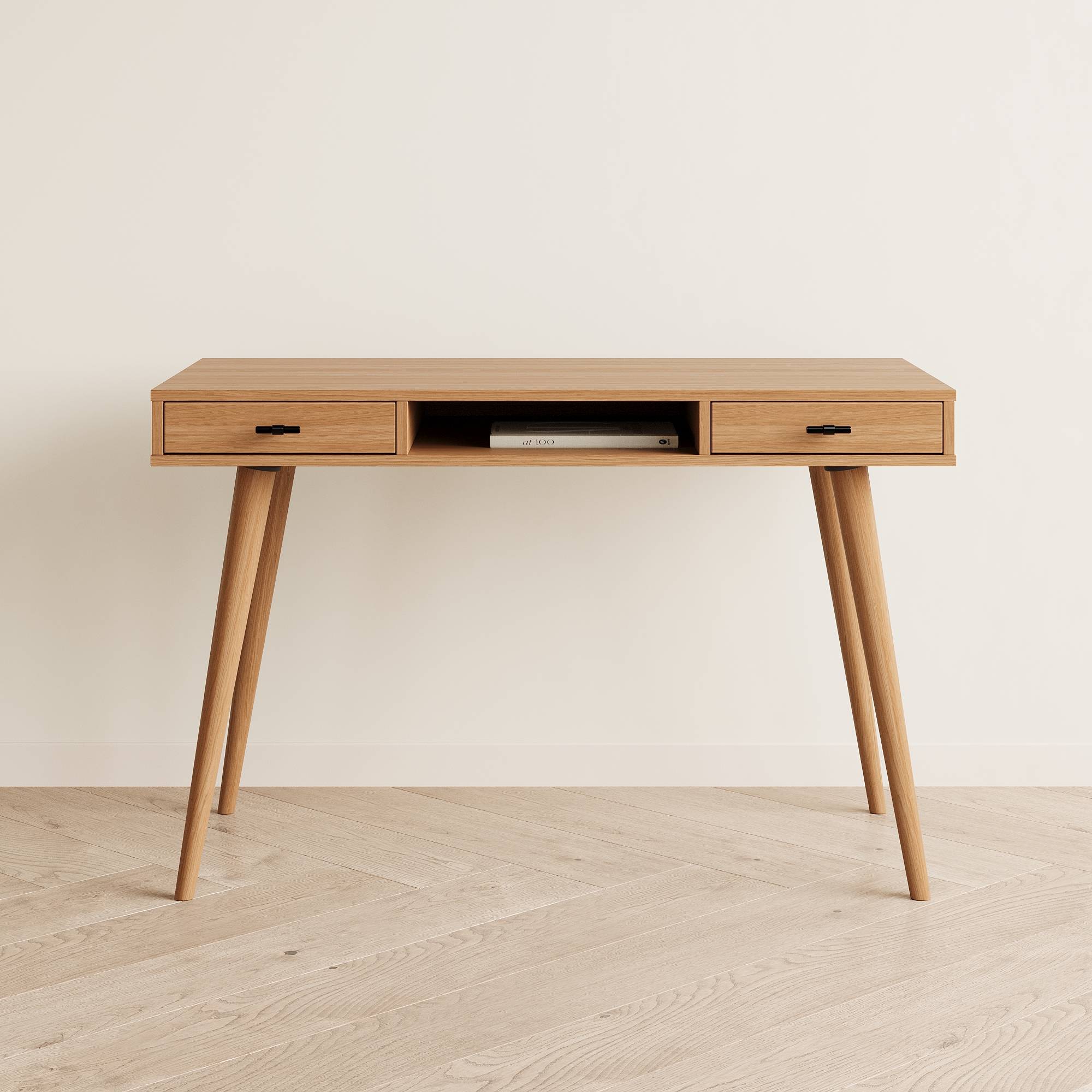Особенности конструкции: 2 выкатных ящика (шариковые направляющие с доводчиками). Центральная секция открытая. Ножки монтируются самостоятельно - легко вкручиваются в коннекторы швейцарского производства. Цвет коннекторов - чёрный.Варианты отделок: при выборе натуральных оттенков дерева (дуб/светлый орех и т.д.), поверхности будут со структурой дерева. При покрытии эмалями в однотонный цвет (белый/чёрный/RAL/NCS), можно выбрать поверхности: гладкие или со структурой дерева. В этом случае, в комментарии к заказу нужно указать необходимый оттенок эмали и какой вариант поверхностей вам нужен.