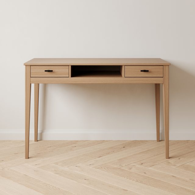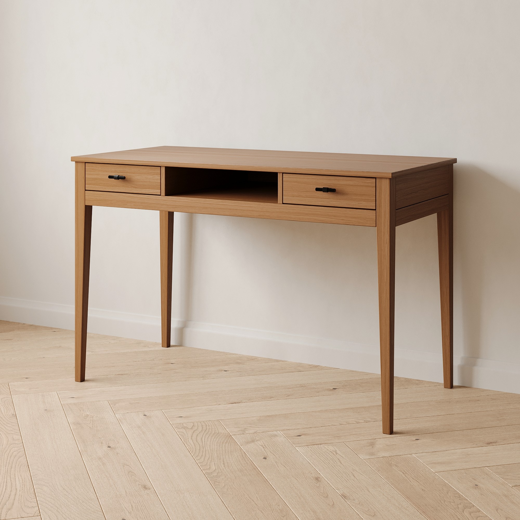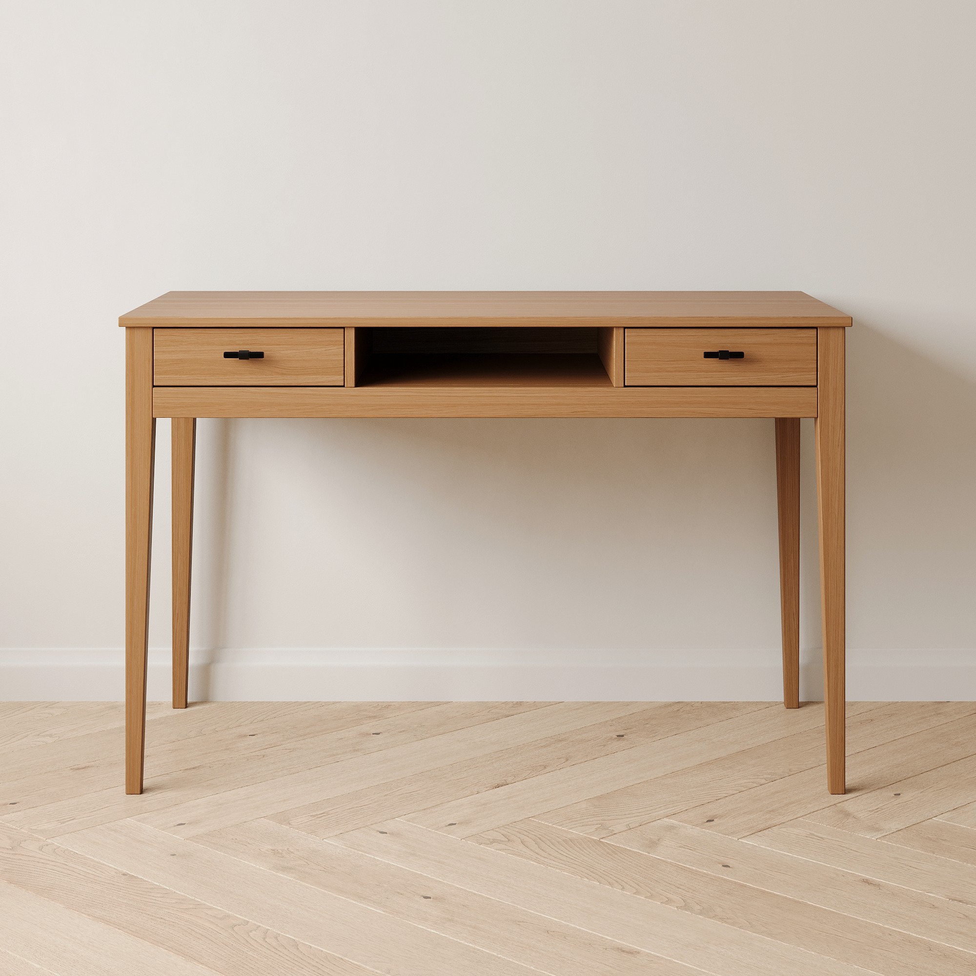 Эта строгая и утонченная модель письменного стола вдохновит на увлечённую и плодотворную работу. Эстетика натурального дерева сочетает в себе продуманную эргономику. Высота от пола до нижнего края горизонтальной царги - 613 мм. Если вы высокого роста или любите сидеть, скрестив ноги, перед заказом внимательно проверьте эти размеры, чтобы вам было комфортно. Если покажется, что места недостаточно то в каталоге есть модель USTAS 3 с одним ящиком и открытой зоной.