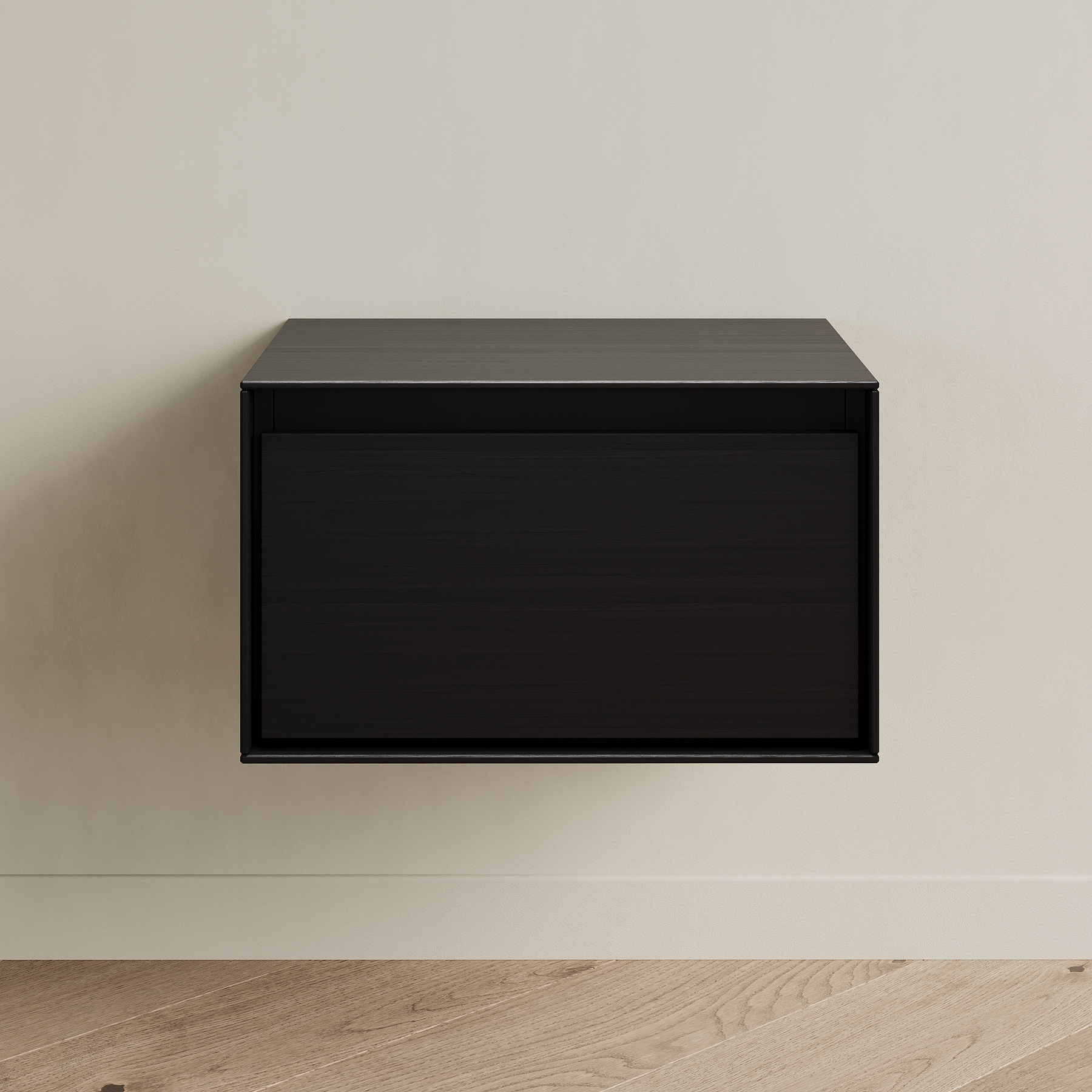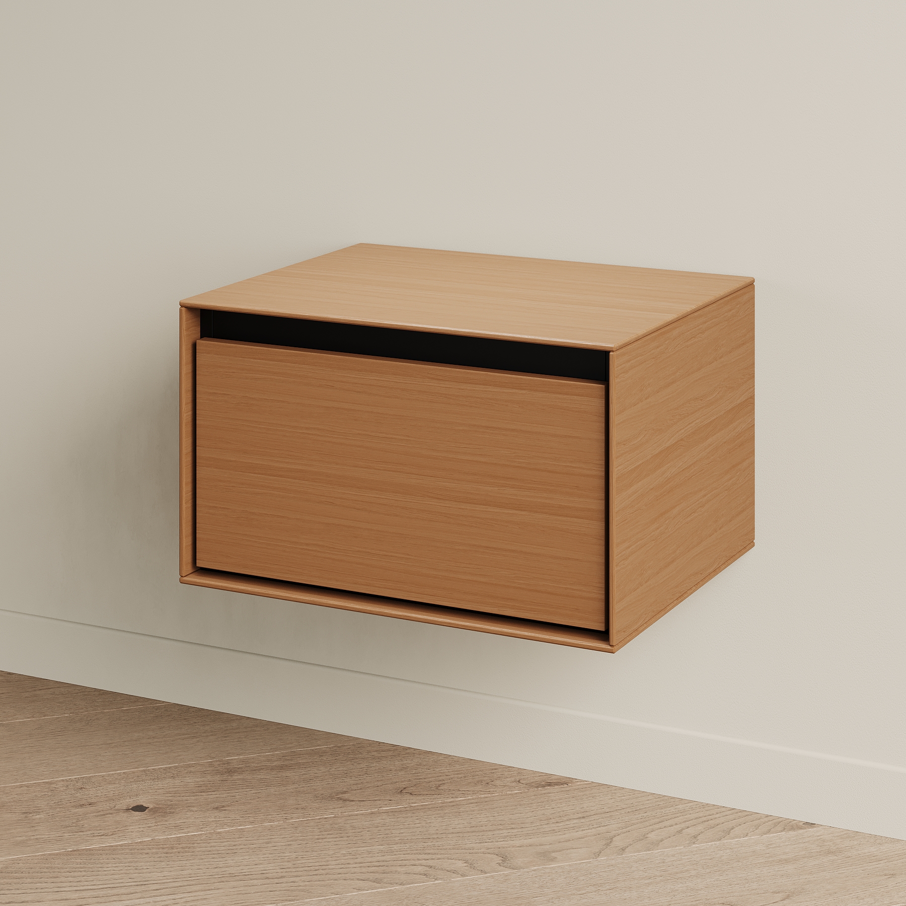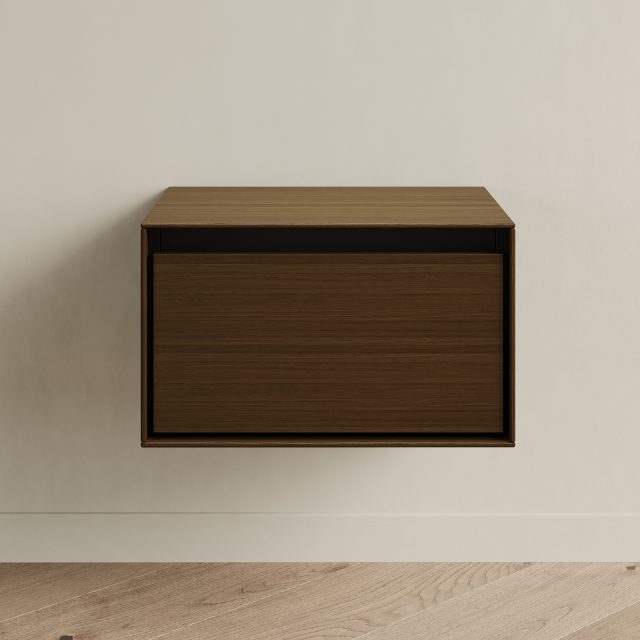 Прикроватная тумба VESTA fly - образец современного дизайна, созданного на основе опыта, который мы получили от европейских коллег. Внешние стенки выполнены из тонкого материала, что выглядит очень эффектно. Внутренний каркас контрастного чёрного цвета спрятан за этими стенками. Вместительный выкатной ящик с доводчиком также чёрный. Тумба крепится на стену при помощи надёжных подвесов (пара выдерживает нагрузку до 130 кг). Её можно повесить на удобной высоте у кровати или использовать в небольшом холле для хранения разных мелочей и чтобы поставить сумку и положить ключи.