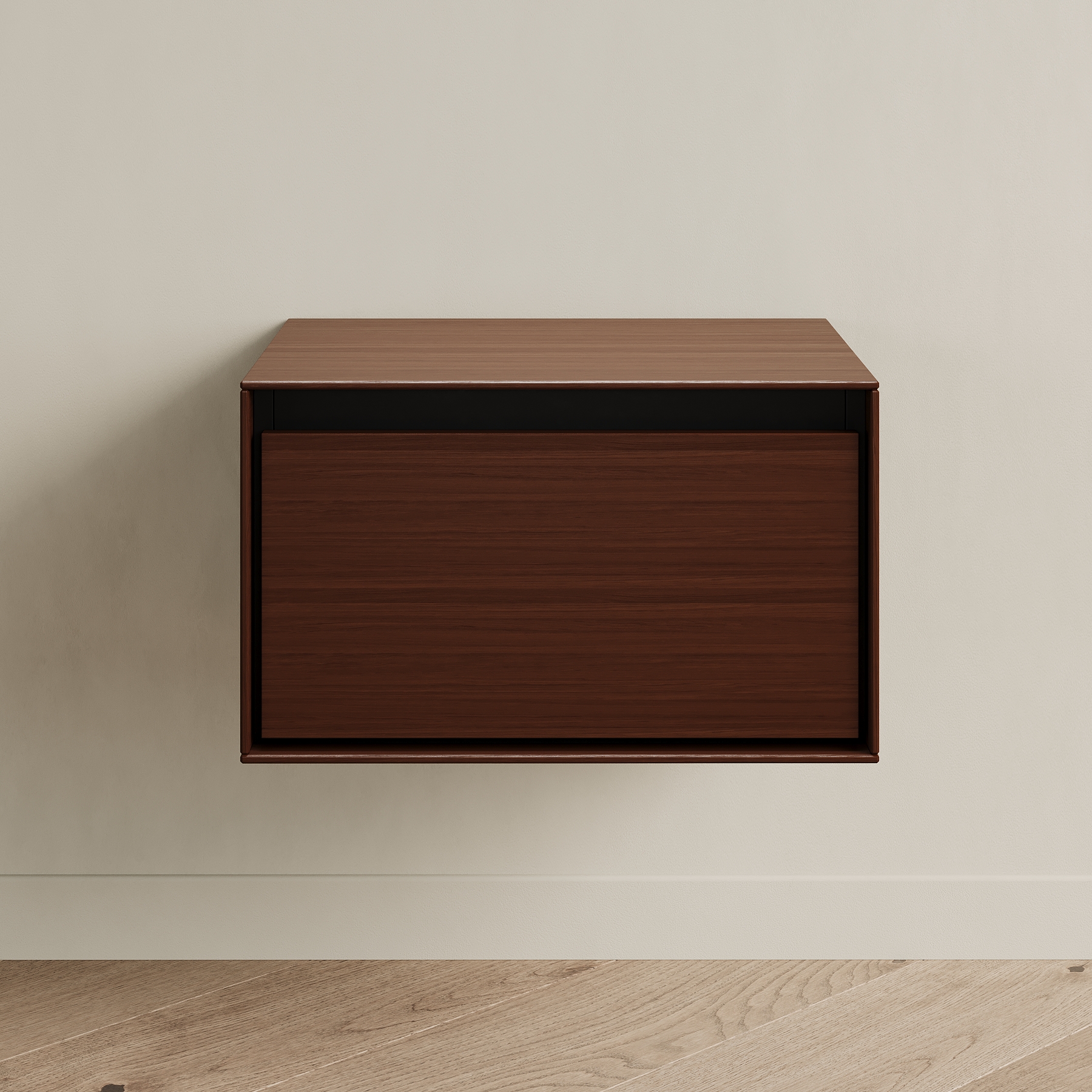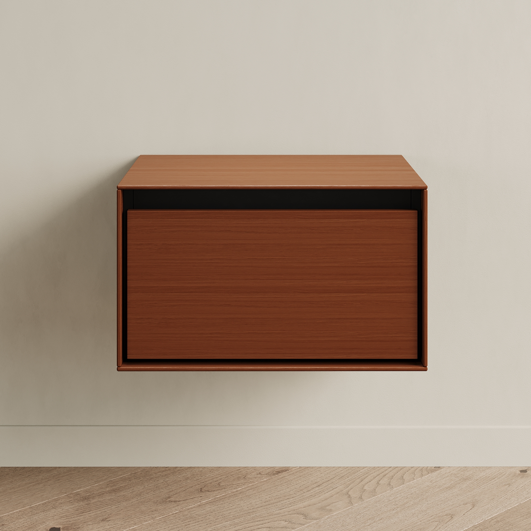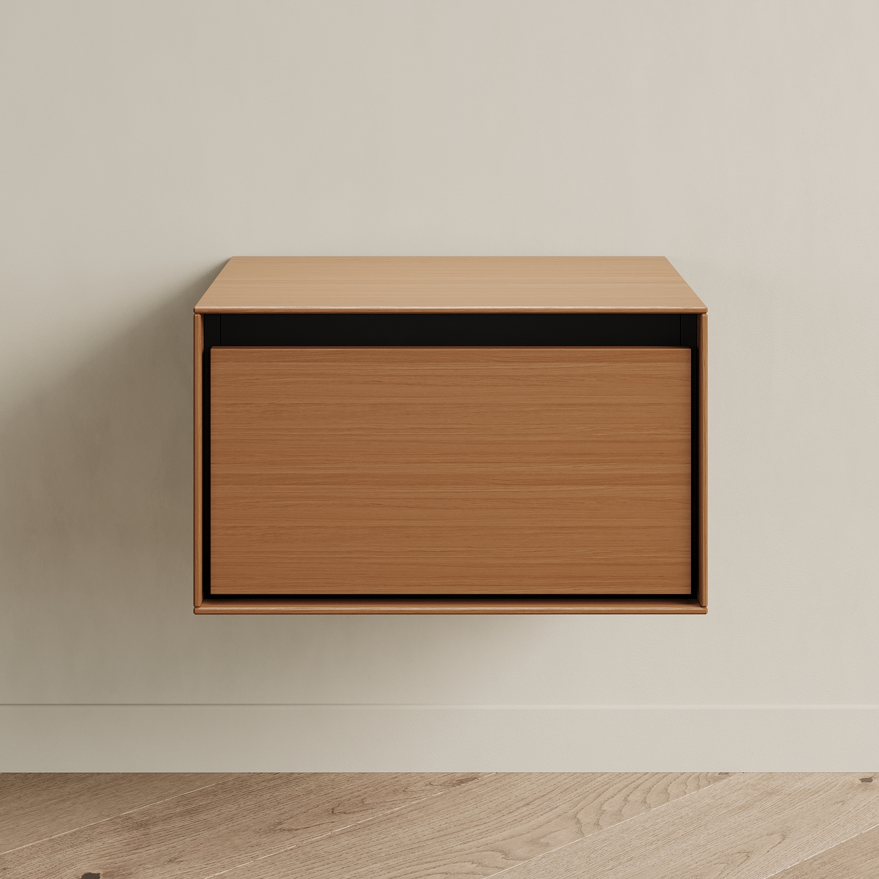 Прикроватная тумба VESTA fly - образец современного дизайна, созданного на основе опыта, который мы получили от европейских коллег. Внешние стенки выполнены из тонкого материала, что выглядит очень эффектно. Внутренний каркас контрастного чёрного цвета спрятан за этими стенками. Вместительный выкатной ящик с доводчиком также чёрный. Тумба крепится на стену при помощи надёжных подвесов (пара выдерживает нагрузку до 130 кг). Её можно повесить на удобной высоте у кровати или использовать в небольшом холле для хранения разных мелочей и чтобы поставить сумку и положить ключи.