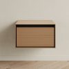 Особенности конструкции: 1 выкатной ящик (направляющие скрытого типа с доводчиком). Ручка интегрирована в фасад - выполнена в виде запила под 45 градусов.