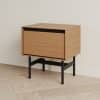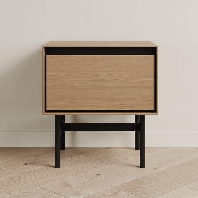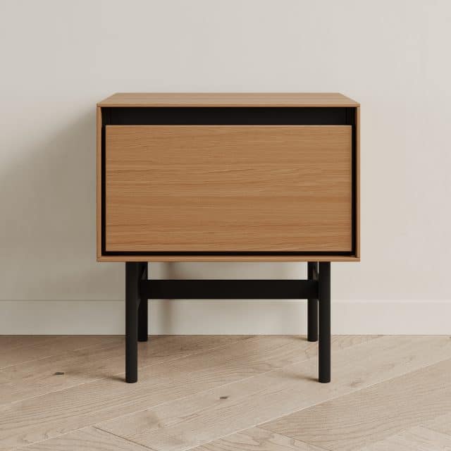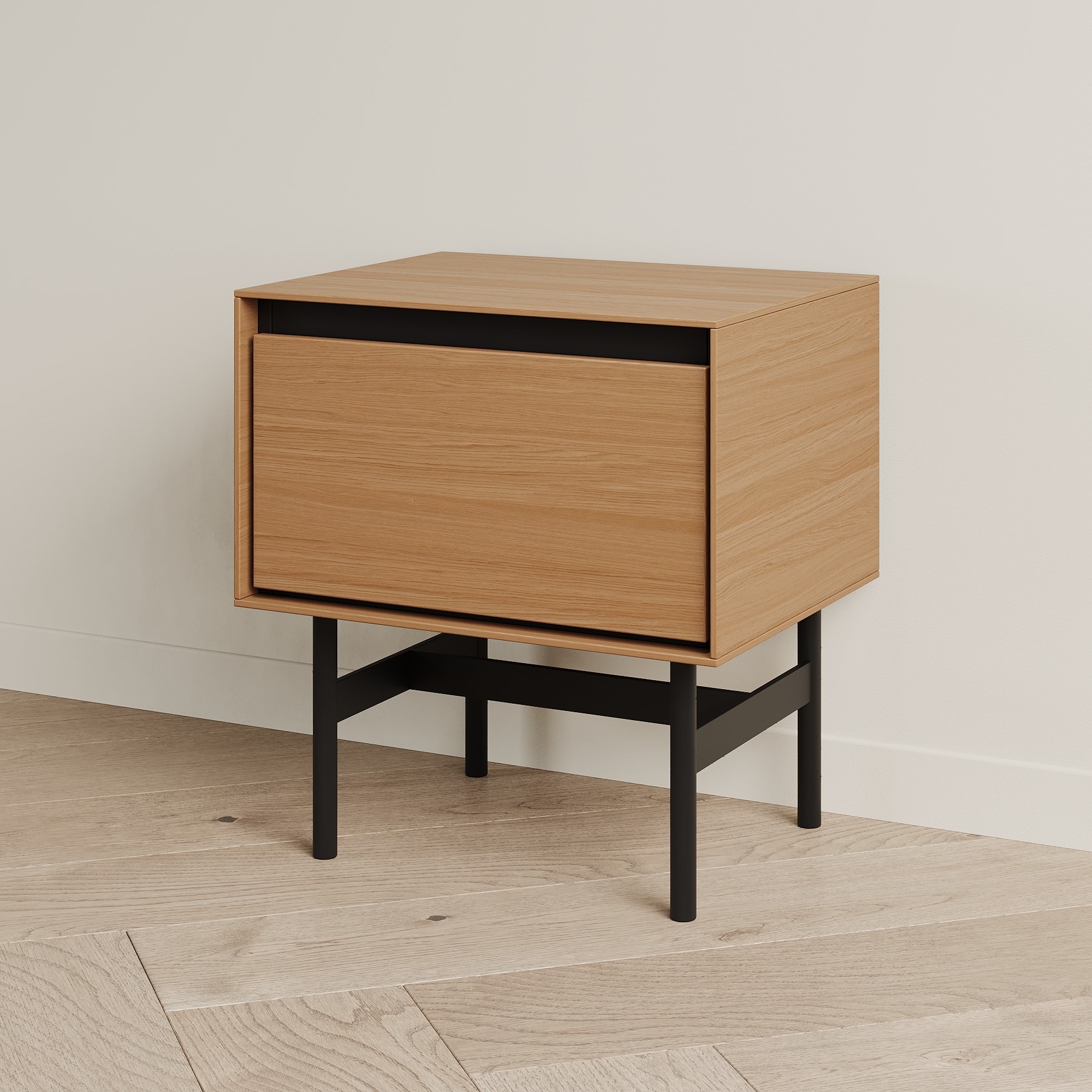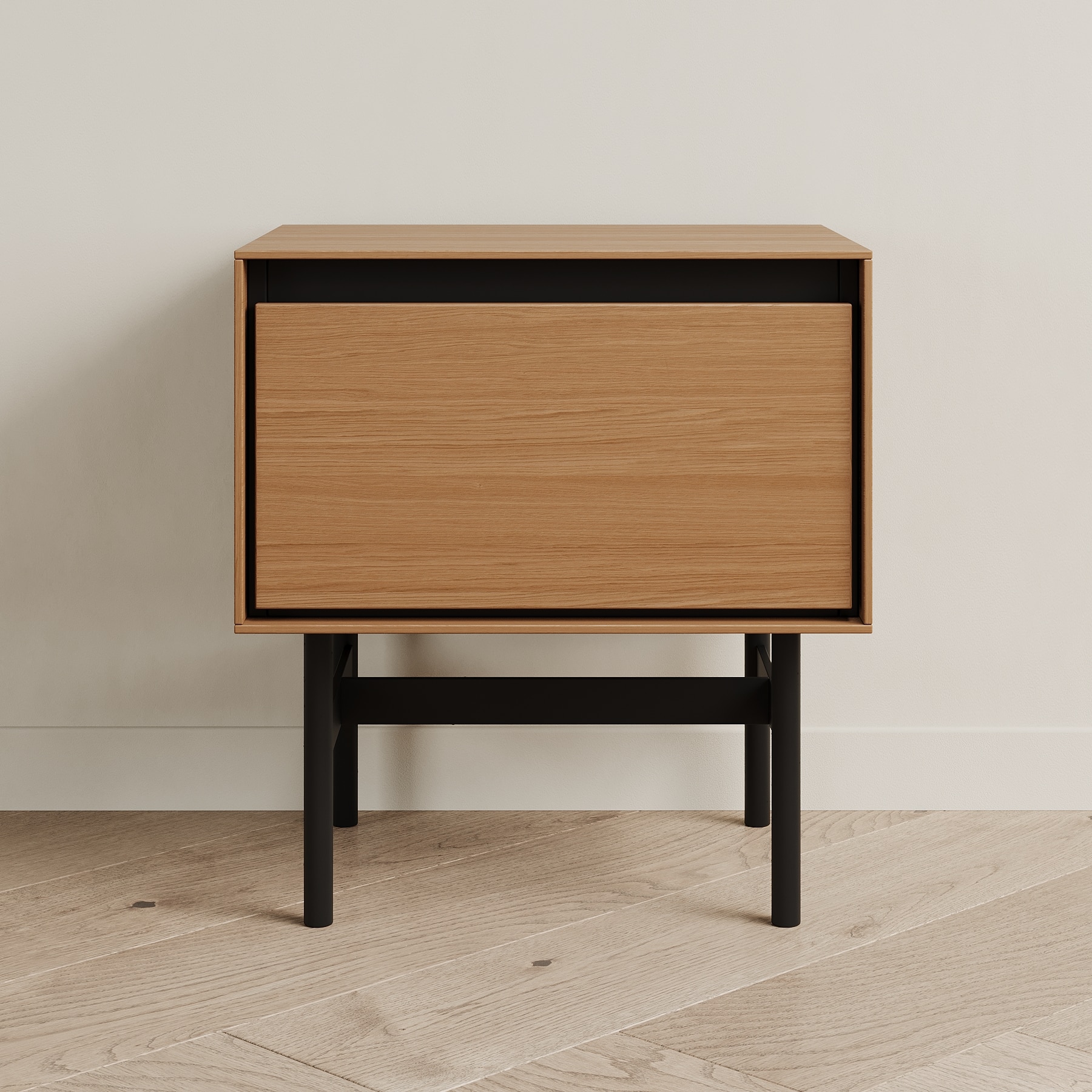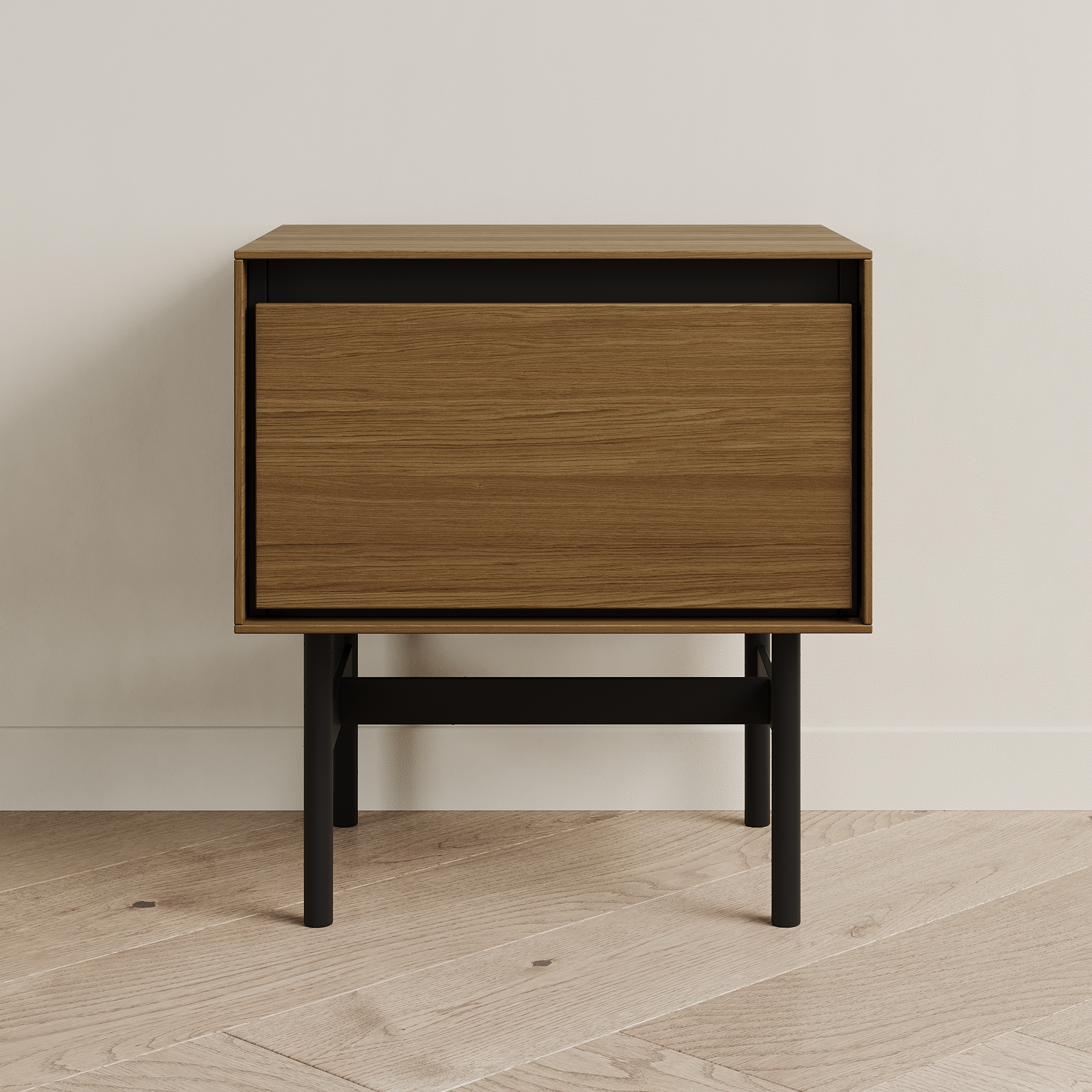 Прикроватная тумба VESTA - образец современного дизайна, созданного на основе опыта, который мы получили от европейских коллег. Внешние стенки выполнены из тонкого материала, что выглядит очень эффектно. Внутренний каркас контрастного чёрного цвета спрятан за этими стенками. Вместительный выкатной ящик также чёрный.Особенности конструкции: 1 выкатной ящик (направляющие скрытого типа с доводчиком). Ручка интегрирована в фасад - выполнена в виде запила под 45 градусов. Основание из металла с круглым сечением ножек.